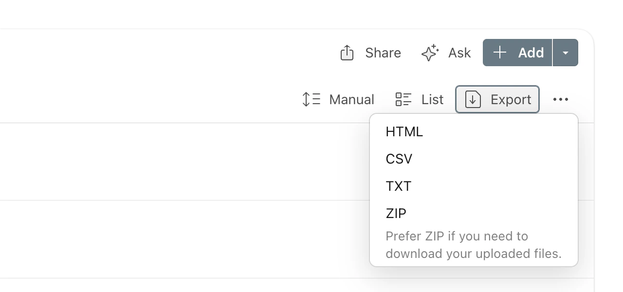 Highlights from a single bookmark can be exported as a text or CSV file.- Web & Desktop