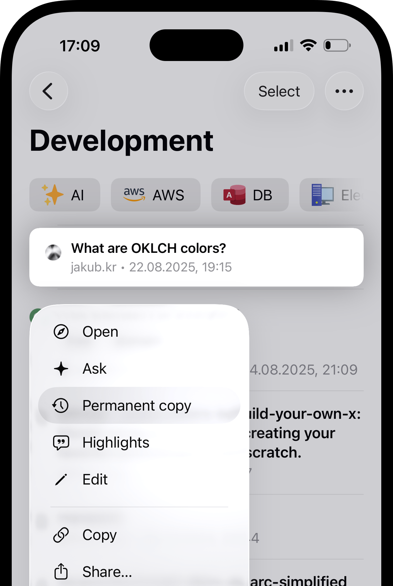 - Automatic — every bookmark is archived in the background, nothing to set up